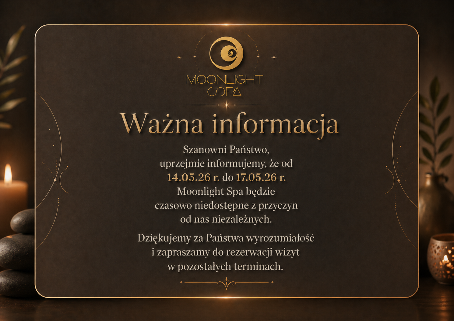 Jeśli szukasz na mapie Krakowa Spa, w którym będziesz się czuł/a bezpiecznie, będziesz obsłużona/y w pełni profesjonalnie, z indywidualnym podejściem do Twoich potrzeb – to zapraszamy do Moonlight Spa – chcemy, aby było ono Twoim Day Spa!